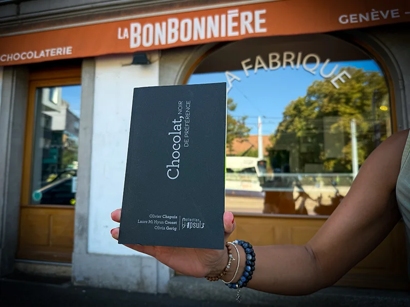 Nous serons également accueillis à la chocolaterie «La Bonbonnière», rue de Genève 14, qui permettra le lien avec la nouvelle chocolatée «La Boîte» d’Olivier Chapuis tirée du recueil «Chocolat, noir de préférence» édition A3 Haute édition.
