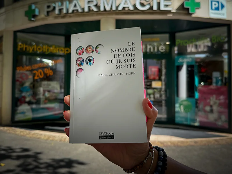 Nous glisserons sur la lisière du fantastique avec le chapitre «Morte de chaud» du recueil de nouvelles de Marie-Christine Horn: «Le nombre de fois où je suis morte», éditions Okama, 2024 devant la pharmacie de Chêne-Bourg.