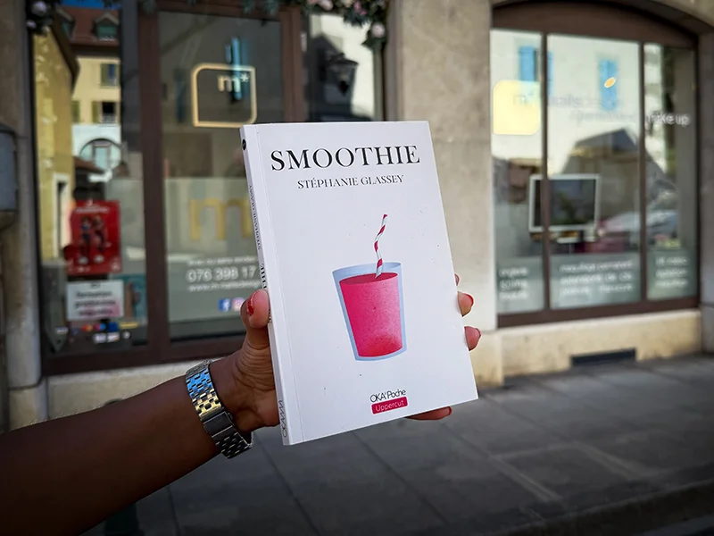 Pour ensuite nous rendre devant l’onglerie «M. Naildesign», à la rue du Gothard pour se plonger dans le roman de Stéphanie Glassey «Smoothie», éditions Okama, 2024, soulevant des enjeux très actuels à travers une narratrice en crise de vie se questionnant sur les injonctions au bonheur, notamment à travers l’esthétique ou les approches dites alternatives.